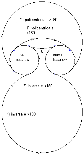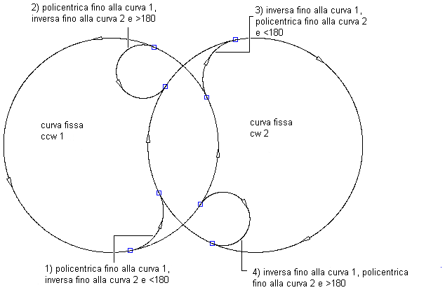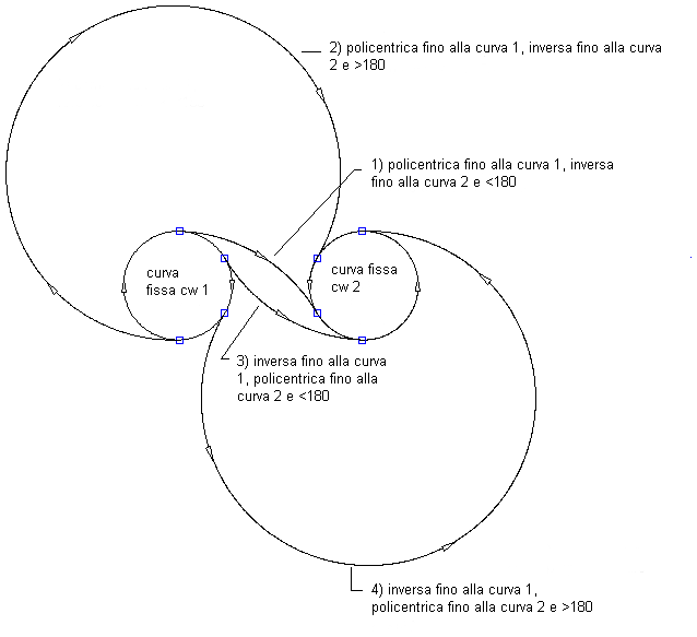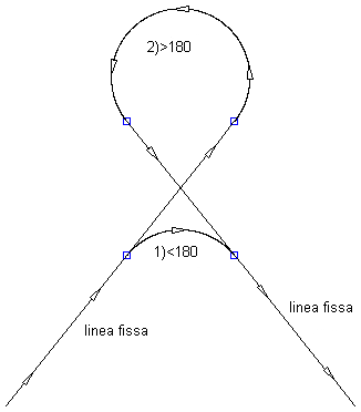 Nella seguente illustrazione viene mostrato un raccordo a curva libera tra due curve fisse in senso orario: