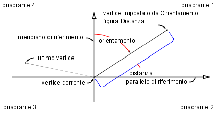 Di seguito viene illustrato il comando Orientamento distanza della figura: