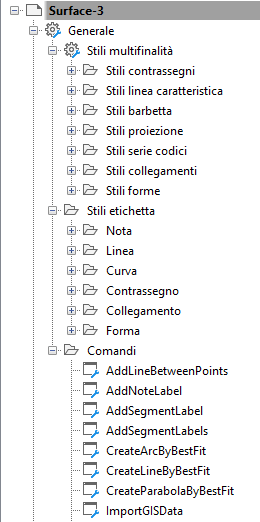 Gli oggetti Condotte e Superficie possono condividere gli stili Render nella raccolta Stili multifinalità generale, mentre Modellatori e Scarpata condividono gli altri stili nella cartella.