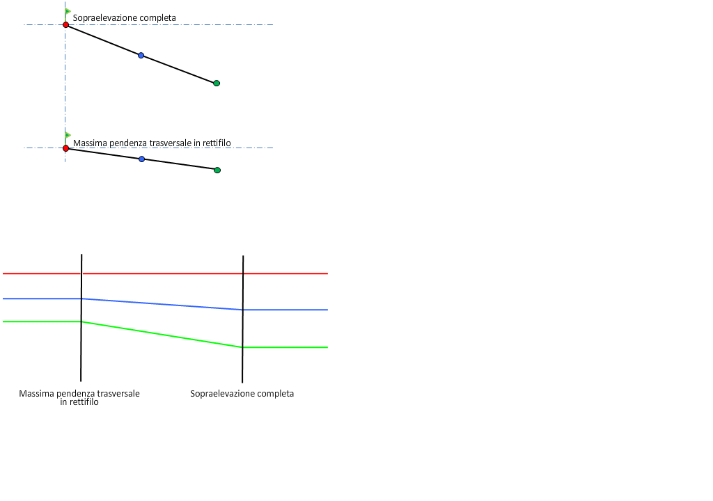 Nell'illustrazione che segue è rappresentato il metodo di rotazione All'esterno della curva per una sezione stradale a singola falda e unica carreggiata.