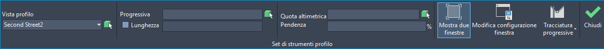 Il punto è quindi selezionato nella vista profilo e i campi nella barra multifunzione Set di strumenti profilo vengono ripristinati con i valori vuoti.