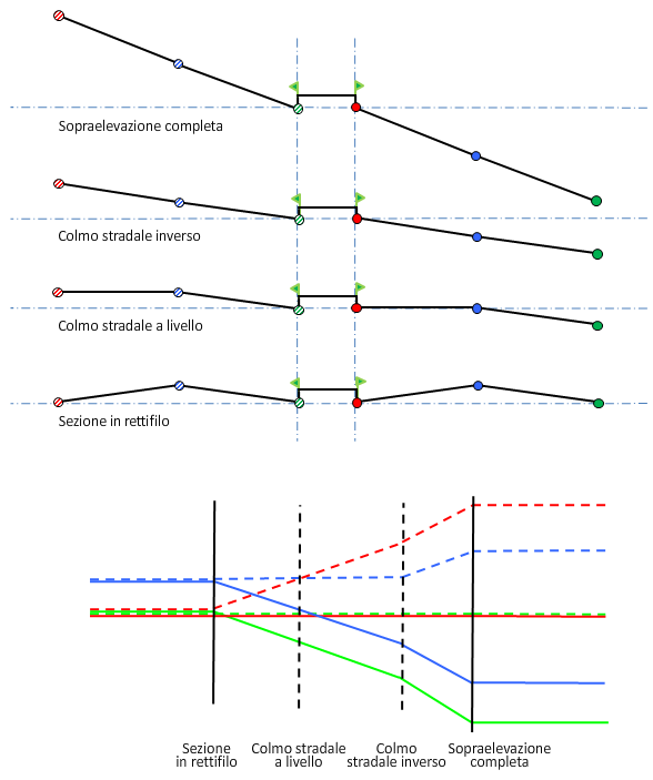 Nota: Se non diversamente specificato, tutti i diagrammi di sopraelevazione rappresentano una curva a destra.