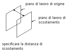 Crea un piano di lavoro con uno scostamento ad una determinata distanza rispetto ad un piano di lavoro di origine selezionato. Per ulteriori informazioni, vedere Piani di lavoro di scostamento qui di seguito.