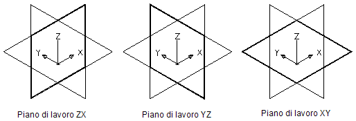 Crea i piani di lavoro standard ZX, YZ e XY del WCS.