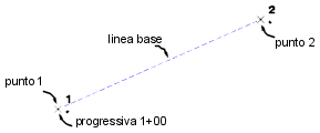| punto 1 | Identificatore del punto esistente per il punto iniziale della linea base. Questo punto viene assegnato al numero di progressiva attribuito al componente progressiva. |