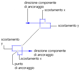 - Punto iniziale e Punto finale: questo metodo consente di ancorare i punti iniziale e finale del componente linea. La lunghezza e l'angolo della linea sono determinati dalla posizione degli oggetti di ancoraggio e vengono regolati in caso di modifica dei componenti di ancoraggio. Nell'illustrazione che segue viene mostrata una linea definita mediante questo metodo: