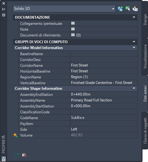 Per default, Autodesk Civil 3D include tre definizioni gruppo proprietà applicabili a solidi e corpi 3D e ai modellatori: