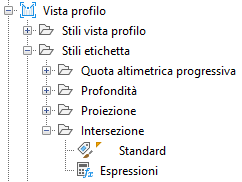 Oggetti intersezione utilizzano gli stili etichetta intersezione della vista profilo.