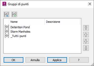 L'ordine di visualizzazione dei gruppi di punti di una Carta determina l'ordine in cui i gruppi di punti vengono tracciati quando viene aperta una Carta o vengono rigenerati gli elementi grafici. Il primo gruppo di punti (in cima all'elenco) dell'elenco è l'ultimo ad essere tracciato.
