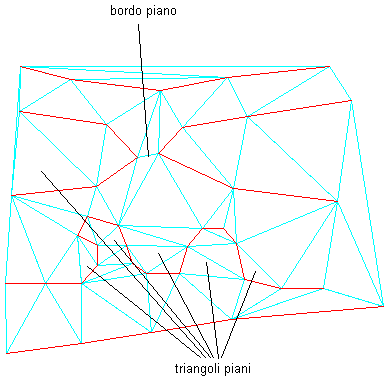 Quando ad una superficie TIN vengono aggiunte curve di livello, la superficie risultante può contenere punti piani (triangoli i cui punti provengono tutti dalla stessa curva di livello) e lati piani (lati di triangoli che uniscono punti della stessa curva di livello o di curve di livello diverse che si trovano alla stessa quota altimetrica).