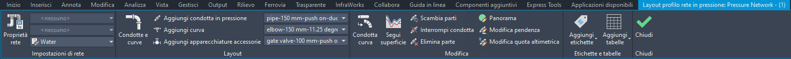 Nota: La rete in pressione deve essere presente nella vista profilo per poter accedere alla barra multifunzione Layout profilo rete in pressione.