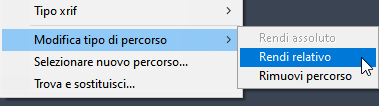 Controllare tutti i file progetto prima di eseguire la migrazione a Forma Data Management. In Civil 3D, verificare che tutti i riferimenti esterni siano associati al percorso relativo. In Gestione riferimenti esterni, è possibile selezionare e modificare più file utilizzando il comando Rendi relativo.