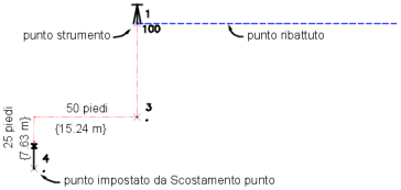 Il punto 4 viene posizionato ad una distanza di scostamento di 15.240 m e una distanza successiva di 7.620 m dal punto 3.