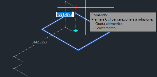 Il grip verde a rombo regola la quota altimetrica o lo scostamento verticale dell'accumulo sotterraneo. Il movimento di questo grip è bloccato sull'asse Z.