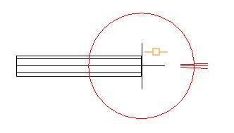 La bussola funge da guida per l'inserimento della parte successiva della rete in pressione durante la creazione del layout della rete in pressione. La bussola è un cerchio contrassegnato da segmenti di arco e viene visualizzata dopo il disegno del primo segmento di condotta. I segmenti indicano gli angoli che è possibile definire con le curve disponibili o gli angoli di deflessione consentiti.