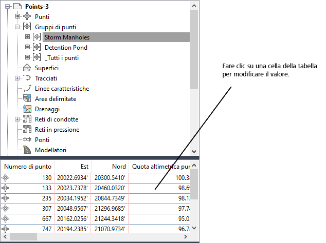 L'approccio utilizzato in Autodesk Civil 3D per la modifica degli oggetti è simile per tutti i tipi di oggetti. Di seguito sono descritti gli strumenti principali di modifica.