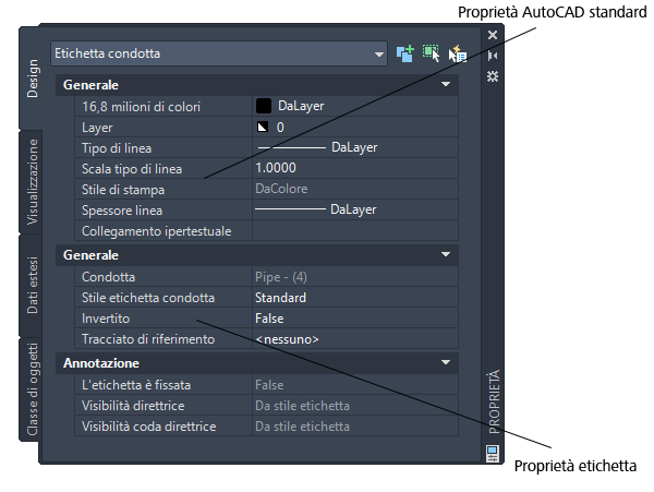 Modifica delle proprietà di AutoCAD per un'etichetta condotta