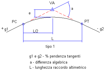 I raccordi concavi vengono collocati nelle vallate o ogniqualvolta la pendenza percentuale aumenta. Esistono tre tipi di raccordi concavi: transizione da pendenza percentuale negativa a positiva, da negativa a negativa e da positiva a positiva.