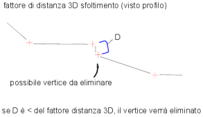 Specifica la distanza 3D per lo sfoltimento. Questa impostazione consente di sfoltire i punti che sono vicini tra loro in una vista piana ma che presentano quote altimetriche leggermente diverse.