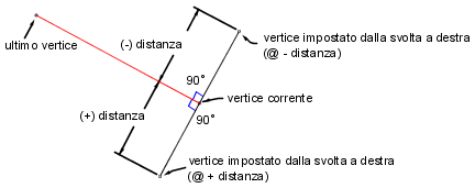 | distanza | Distanza dal vertice corrente al nuovo vertice. Immettere questo valore nelle unità di distanza correnti del database rilievi. |