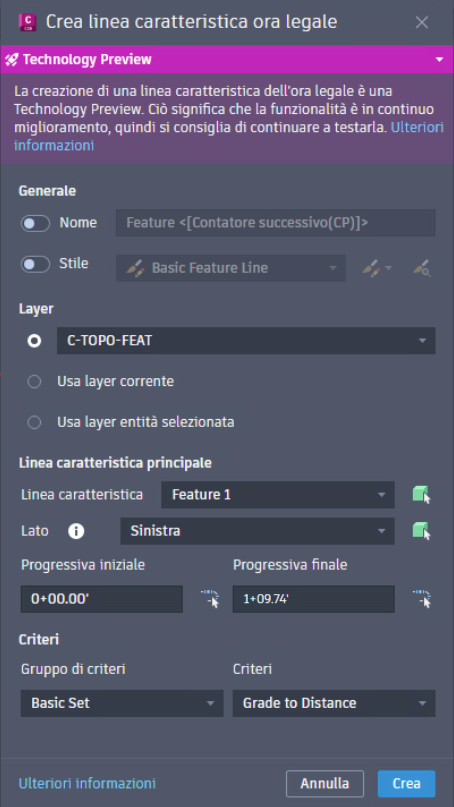 Daylight Feature Line for Civil 3D 2027 è una Technology Preview. Cos'è una Technology Preview?