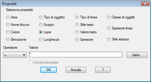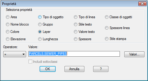 Selezionare Layer come condizione di proprietà. Solo gli oggetti sui layer specificati vengono aggiunti alla Carta.