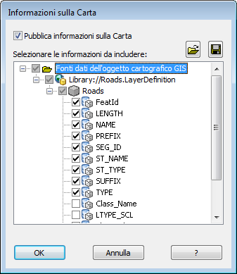 Impostare le opzioni di pubblicazione DWF che specificano le informazioni attributo da pubblicare con la Carta geotopografica.