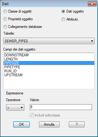 Specificare le condotte dei canali di fognatura con diametro superiore a 8 pollici.