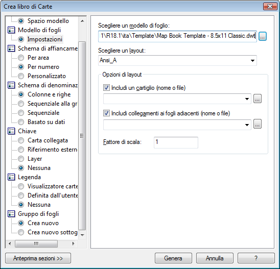 Nota: Se non si imposta il Fattore di scala, il libro di Carte includerà un numero elevato di tasselli. Assicurarsi di averlo impostato su 5000.