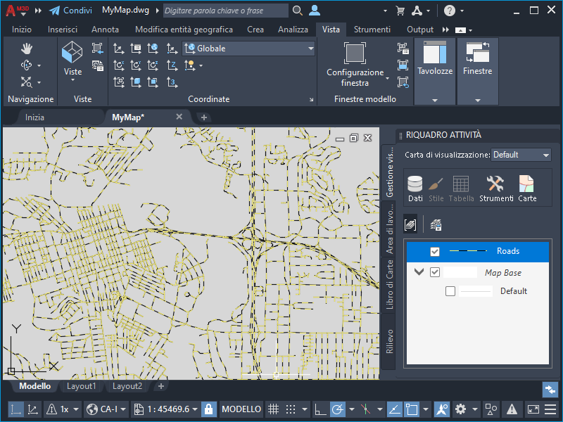 I file cartografici utilizzano l'estensione .dwg, al pari dei disegni AutoCAD. Entrambi i tipi di file utilizzano lo stesso formato di file di base.