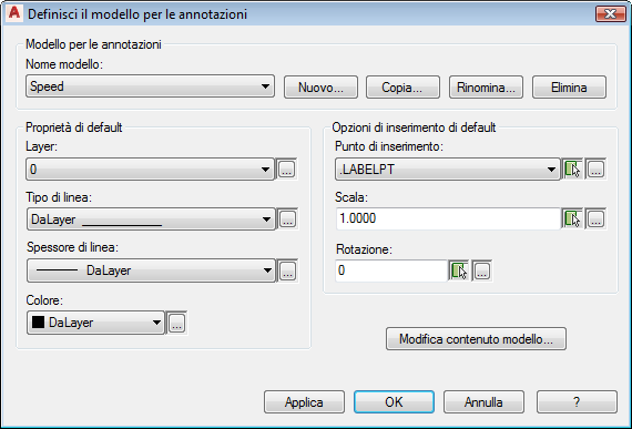 Viene visualizzata la finestra di dialogo Definisci il modello per le annotazioni.