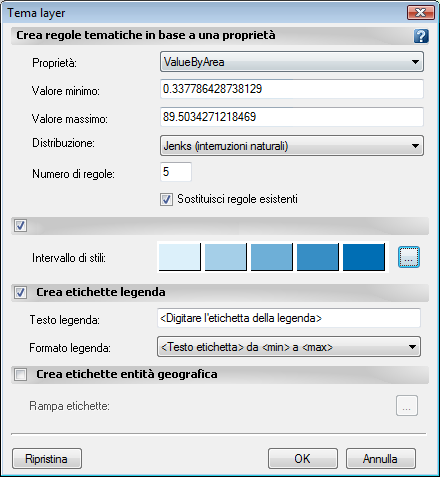 In questo esercizio viene creato un tema in base alla proprietà calcolata definita per ValueByArea.