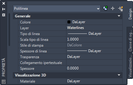 Le strade sono oggetti di un disegno AutoCAD. La selezione corrente è definita come polilinea. Per gli oggetti della Carta, è possibile formattare alcune proprietà utilizzando la tavolozza Proprietà.