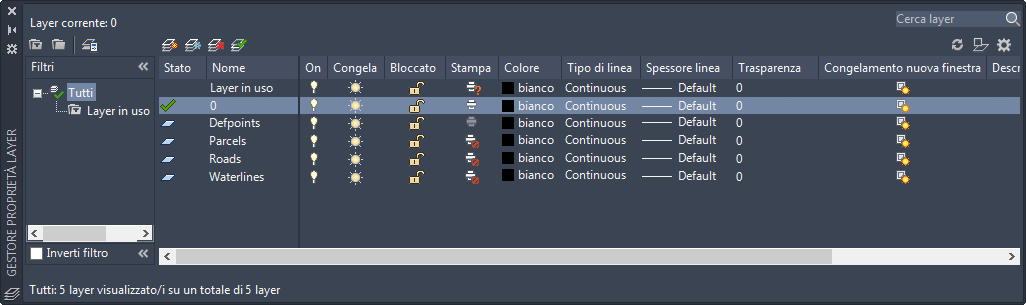 I layer inclusi nella Carta sono elencati insieme alle relative proprietà.