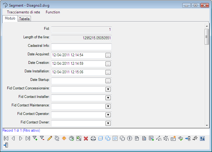 Nella Tabella dati vengono visualizzati la geometria e i dati degli attributi di un'entità geografica. È possibile ricercare le entità geografiche e applicare un tema a queste ultime in base ai dati presenti nella fonte dati dell'oggetto cartografico.