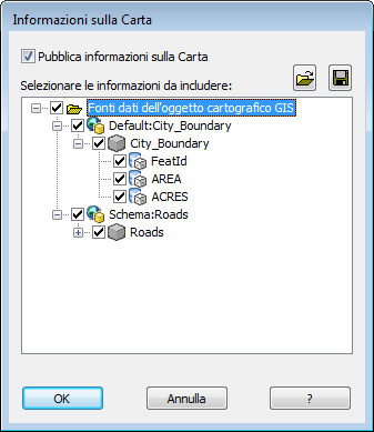 Nella finestra di dialogo Informazioni sulla Carta vengono determinati i dati pubblicati in formato DWF