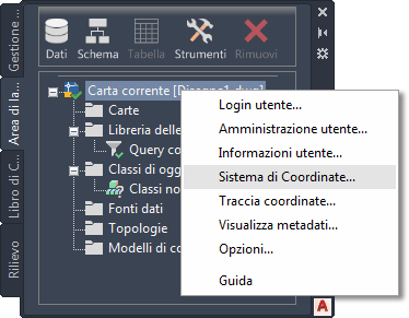 - Fare clic con il pulsante destro del mouse sulla Carta corrente, quindi scegliere Sistema di Coordinate.