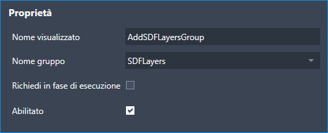La nuova attività Aggiungi gruppo crea un gruppo in cui inserire i nuovi layer. Poiché l'attività LoopAddLayers aggiunge layer al gruppo, è necessario creare il gruppo prima che inizi l'attività in sequenza chiusa.