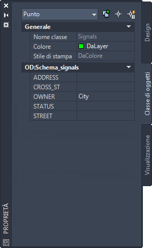 Quando si recuperano tramite query gli oggetti di un file DWG in una Carta, tutte le informazioni relative all'applicazione di stili vengono perse. Poiché ai punti non è applicato alcuno stile, non sono visibili nella nuova Carta. Per visualizzare i punti dei segnali, assegnare uno stile punto alla Carta.
