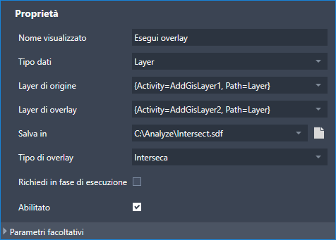 Ad esempio, il flusso di lavoro Overlay richiede di specificare l'archivio dati a cui connettersi.