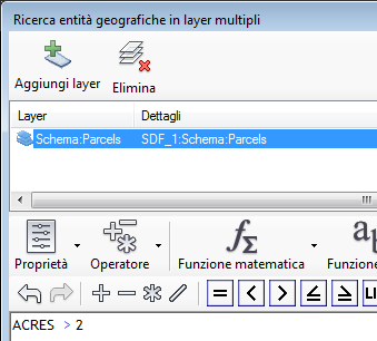 - Per aggiungere altri layer di entità geografiche ai dati cercati mediante l'espressione, fare clic su Aggiungi layer e selezionare il layer da aggiungere. Per eliminare un layer, selezionarlo dall'elenco e fare clic su Cancella.
