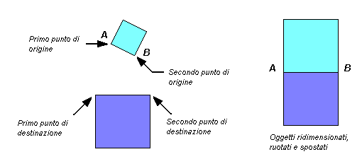 Il rapporto della distanza tra i due punti di destinazione rispetto a quella tra i due punti di origine rappresenta il valore di ridimensionamento in scala.