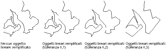 La semplificazione degli oggetti lineari rimuove da una polilinea quanti più punti è possibile, mantenendo l'approssimazione di tolleranza originale.