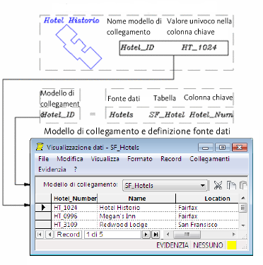 Un modello di collegamento specifica il nome della tabella di database e le colonne chiave da utilizzare per identificare ogni record in modo univoco.