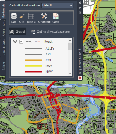 Un tema che mostra le strade in base al tipo