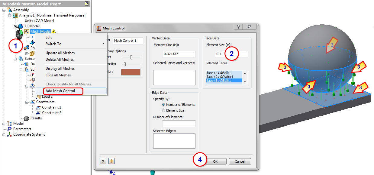 In this exercise, we will simulate a ball dropping from 12 inches onto a steel plate and rebounding back up into the air. This is an example of a nonlinear transient analysis. It requires both dynamic and nonlinear setup steps.