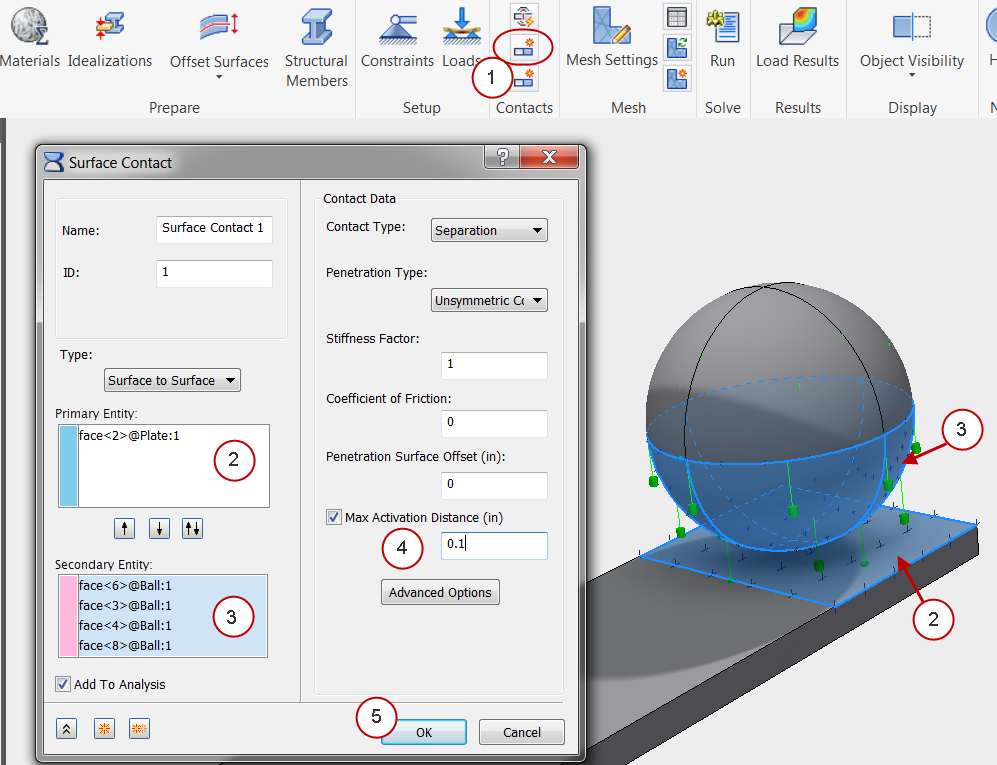 Secondary Entity field, and select the four bottom surfaces of the ball.