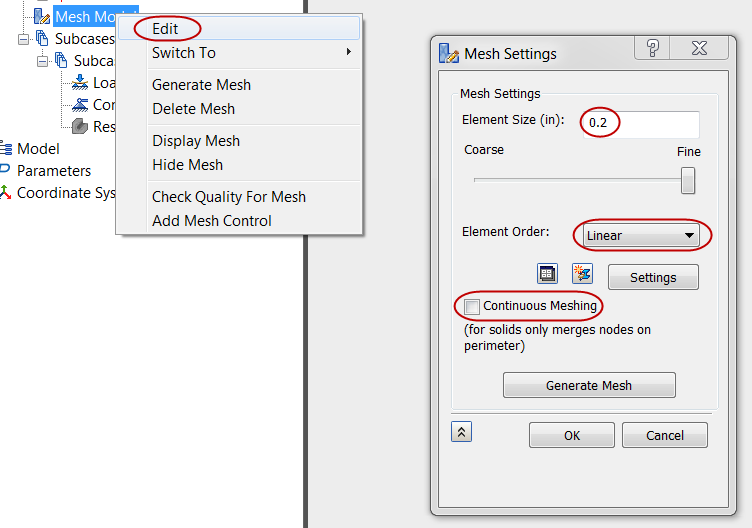 OK to close the Mesh Settings dialog box and generate the mesh.