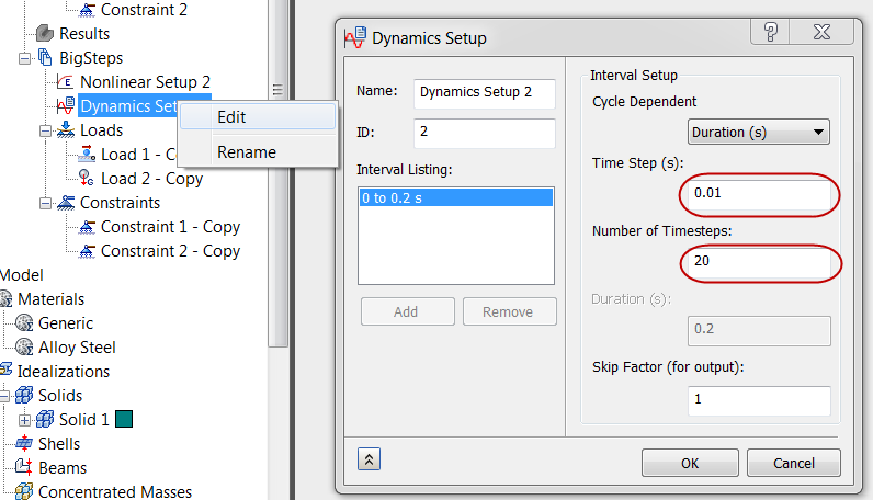 We create the second subcase by copying the first subcase and modifying the time step parameters.
