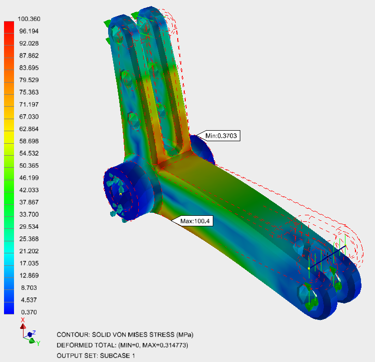 In this exercise, we will conduct a linear static stress analysis of a simple lever arm part. We will use boundary conditions often found in entry-level CAD-based simulation systems. Note that in later exercises we will build on the steps performed here to refine the analysis setup and improve the overall accuracy of the simulation.